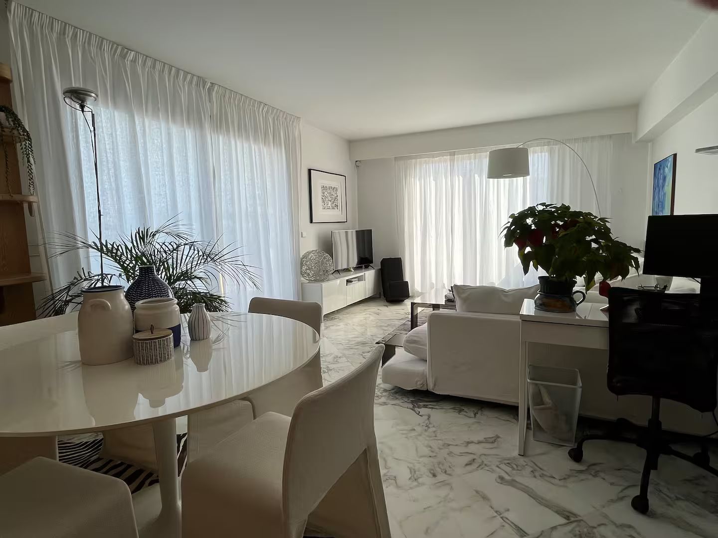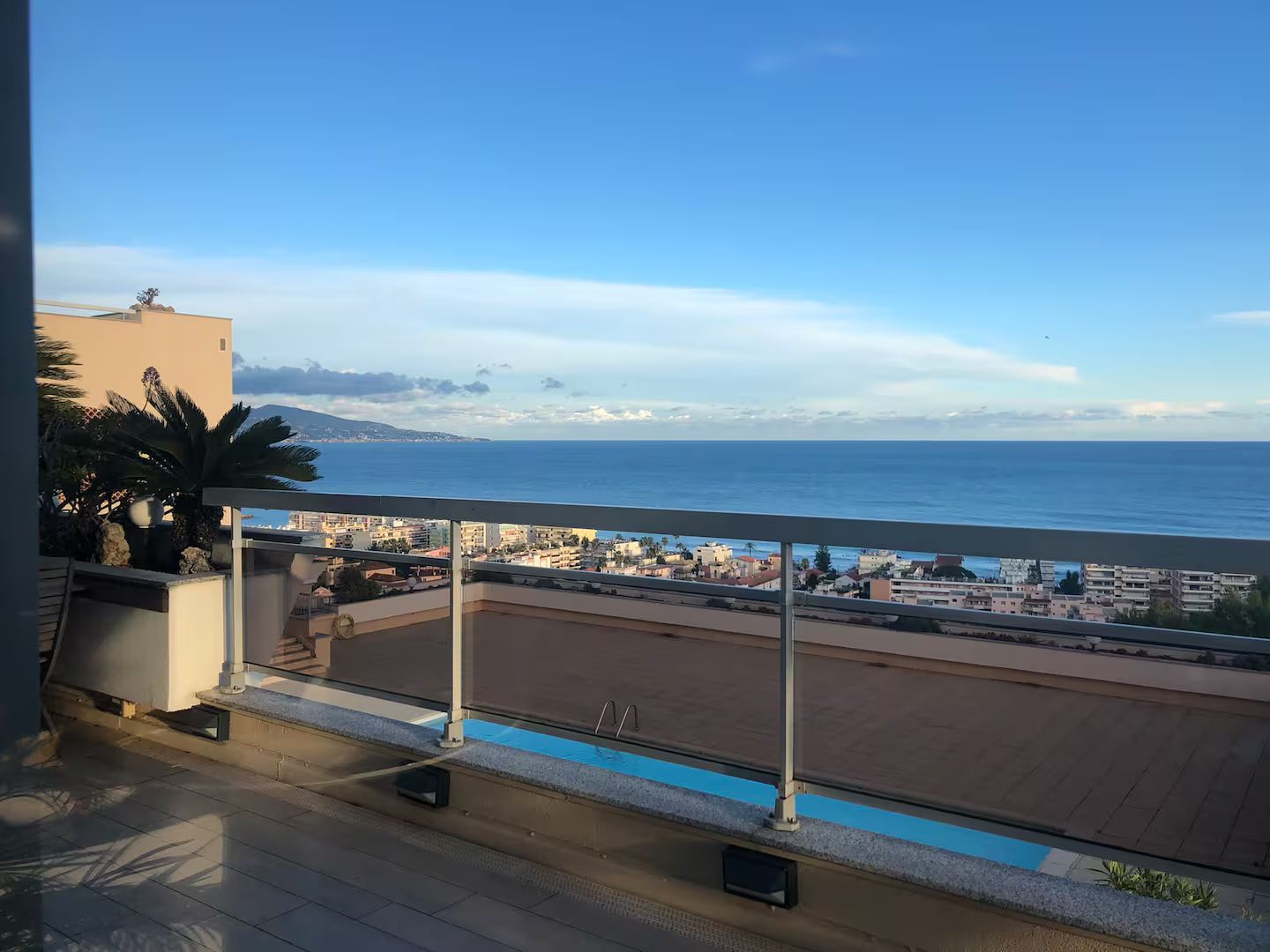 A due passi dalle spiagge, in un condominio tranquillo con piscina, casa nostra é un accogliente e luminoso appartamento di ca. 100mq con un ampio terrazzo vista mare di 50mq. Molto ben disposto, l'appartamento garantisce privacy tra la camera parentale con bagno interno e un’altra camera. Una 3a stanza serve da cabina armadio e deposito valige. Soggiorno, cucina e camera parentale danno sul terrazzo. Il posto auto (a pagamento) é allo stesso livello dell'appartamento con accesso semi privato.